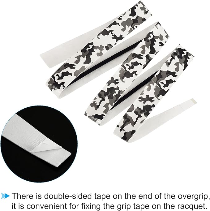 PATIKIL ラケットオーバーグリップ ダンピングリッジ付き 2個 PU グリップテープ ノンスリップ 吸収性 カモパターン テニス バドミントン 釣り竿用 ホワイト