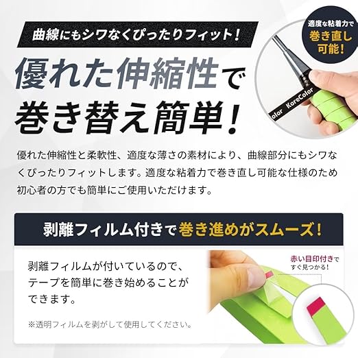 【日本国内で商品開発・専門家監修】日本国内の専門家が1から商品開発することで高品質かつコスパ最強のグリップテープを実現。某有名なメーカーのカラーやサイズ感、ウェット感を再現。また、品質の持続、持ち歩きに便利な個包装タイプに仕上げました。
