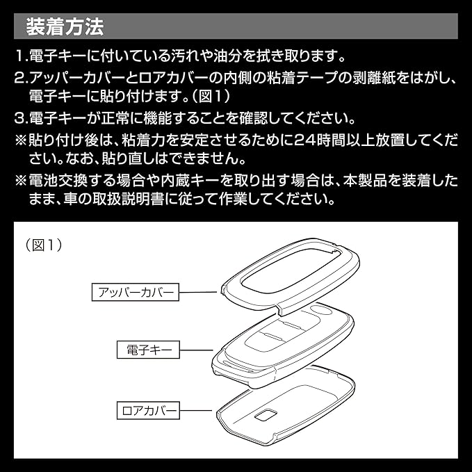 ・本製品を装着すると、使用条件によっては電子キーの作動範囲が狭くなる場合があります。