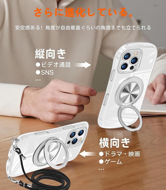 【互換性モデル】iPhone 17 Pro Max 適用 ケース。※ご注意:ご注文する前に、必ずお買い求めの機種とカラーを確認してください。 【MagSafe ワイヤレス充電・スピーディー且つ自由な充電体験】iPhone 17 Pro Max 用ケースには高度な MagSafe 磁気吸着ワイヤレス充電機能が搭載され、利便性の高い充電体験を新たな次元に引き上げました。正確な磁気吸着で位置決めが完了し、「貼り付けるだけで充電開始」となり、煩わしい差し込み操作を廃し、充電プロセスをスムーズに実現します。さらに高性能ワイヤレス充電技術により、安定的かつスピーディーな給電を確保しており、日常的な充電補給から緊急時の持続稼働まで幅広いニーズに柔軟に対応可能です。自宅でのゆったりとした時間、オフィスでの休憩時間、それに旅先での移動中など、あらゆる場面で MagSafe ワイヤレス充電機能がシームレスに適応し、途切れることのない電力サポートを提供し、テクノロジーがもたらす快適さと効率を存分に楽しんでください。 【全面保護】優れた保護性能,耐久性に優れた、傷がつきにくい,衝撃吸収性の高いTPU素材,衝撃やキズ、埃などからしっかりとスマホの背面を守ります。で落下衝撃から本体をしっかりと守ってくれます。フチをわずかに高く設計することで、日常生活の消耗に耐えしっかり保護できる、スマホへの傷つけを防止します。スマホを落としてしまっても衝撃を最小限に抑えるケース。専用にオリジナル設計しているためぴったりとフィットし、保護性能には欠かせないポイントとなっています。 【長さ調整可能 & ストラップの脱着が1秒で可能】調節可能なストラップにより、サイド、またはフロントに持ち運べるときに完璧にあなたの隣に掛けることができます。 このアクセサリーはファッションだけでなく、通常のストラップよりも快適で実用的です。それらは非常に耐性があり、湿気を吸収せず、無臭で乾燥しています。 それはあなたの手に自由を与えます。 ネックストラップはお好みの長さに調節できます。ストラップはいつでも取り外して身につけることができます、好きなように着こなす。