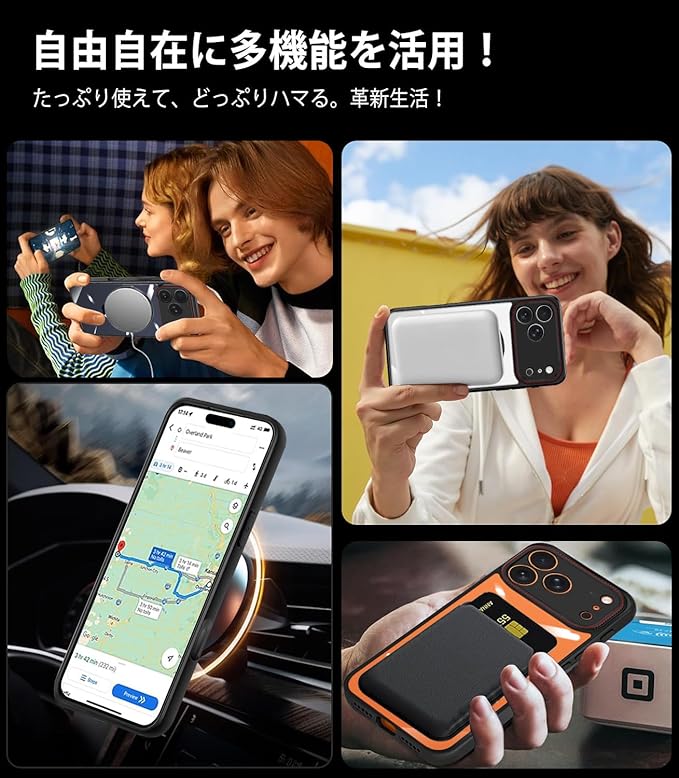 【MagSafe対応・充電効率抜群・車載ホルダー対応】ガッチリ吸着する事で充電器との距離を短縮、エネルギー無損失の急速ワイヤレス充電できる。マグネット式車載ホルダーに対応し。マグネット対応金属板が付き、車載ホルダー吸着することもできます、運転中に携帯電話のナビゲーションなどの機能をより便利に使用することができます。(車載ホルダーは付属しませんので、ご注意ください。)