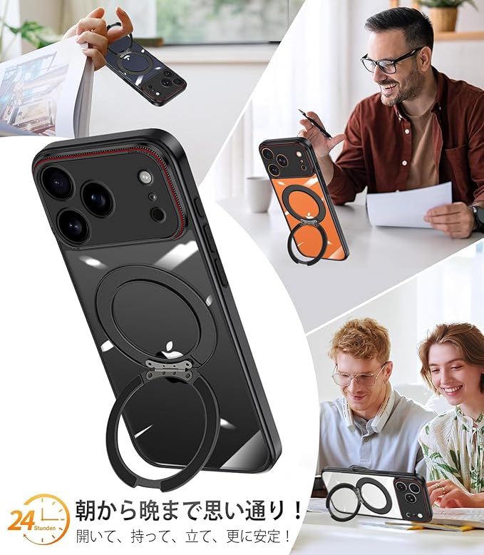 iPhone 17 Pro Max ケース クリア リング付き 360 回転スタンド MagSafe対応 ワイアレス充電対応 耐衝撃 アイフォン 17 Pro Max カバー 軽量 薄型 人気 17promax スマホケース 透明 PC + TPU 車載ホルダー対応 (クリア)