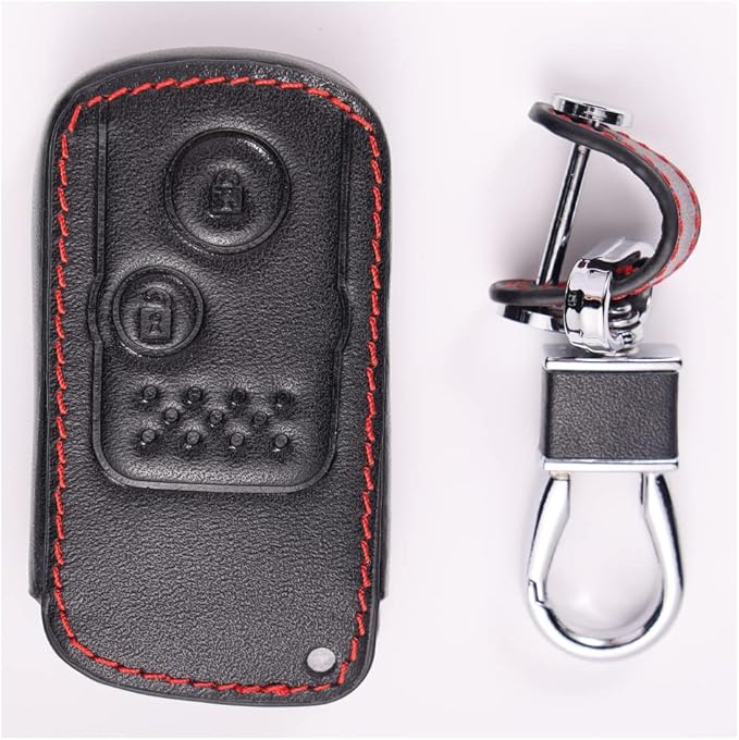 BKY ホンダ車用 2ボタン革キーケース ステップワゴン フィット オデッセイ アコード エリシオン インサイト CR-Z CR-V ストリーム ゼスト ライフに適用 (ブラック)
