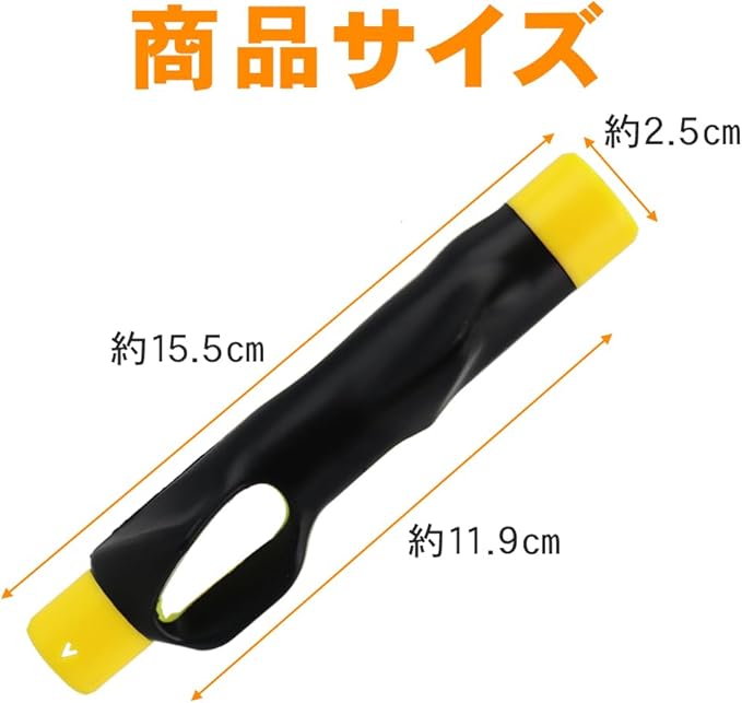 【セット内容】ゴルフクラブ用グリップトレーナー 1点 【サイズ(約)】15.5cm 2.5cm 【カラー】ブラック イエロー 【材質】プラスチック+ゴム