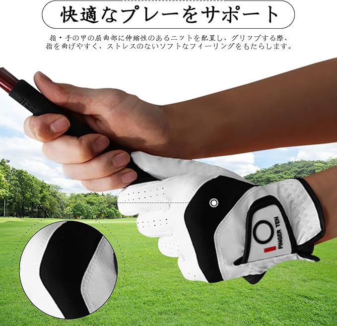 ゴルフグローブ メンズ 天然皮革と合成皮革の組み合わせ ソフト 柔らかめ 伸縮性 通気性 滑りにくいグリップ 両手 雨 汗に強い 全天候モデル ゴルフウェア STNX-622