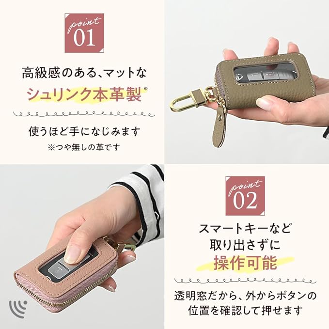 [QUARE] スマートキーケース 本革 窓付き 軽量 小さい シンプル メンズ レディース カラビナ付き 回転式 コンパクト 車用 鍵ケース ギフト プレゼント