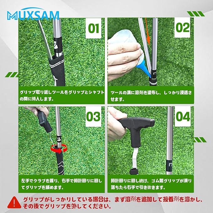 【傷をつけずにグリップを交換】この取り外しツールを使用すれば、グリップを安全に交換でき、ナイフやハサミでグリップを割る方法よりも安全です。クラブに傷をつけることなく、安心して作業できます。古いグリップも破損することなく保存でき、再利用が可能です。