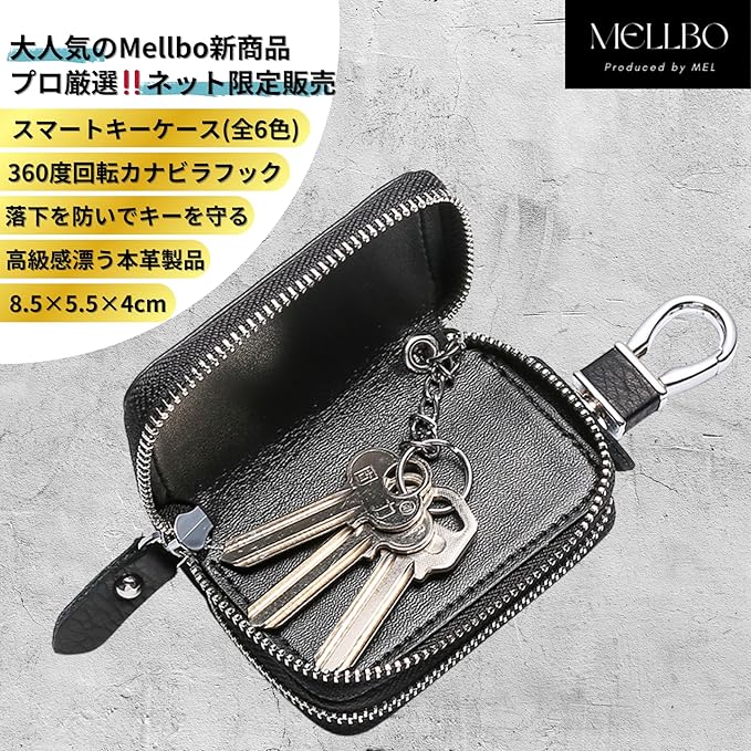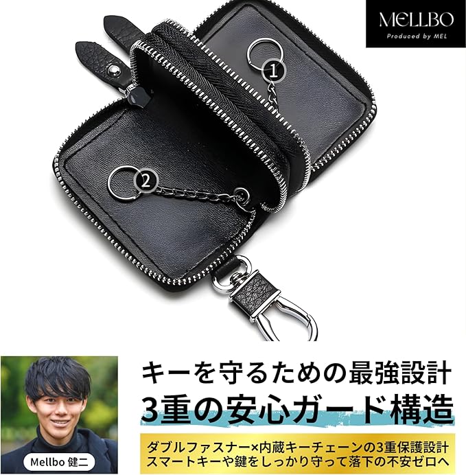 [Mellbo] スマートキーケース 2個収納 キーケース 本革 メンズ 人気 車 ダブルファスナー
