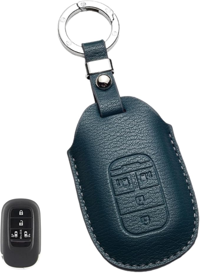 WiiLemzキーケース適合ホンダ 新型ステップワゴン NBOX JF5 JF6 シビック ZR-V ヴェゼル フリード アコード 高級革キーリングキーカバー 4ボタン 両側スライドドア(ダークブルー)
