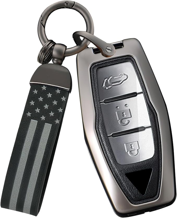 [TECART] 三菱専用 キーケース 三菱 アウトランダー キーカバー Outlander キーホルダー 新型アウトランダー GN0W PHEV 3代目 などに適応 スマートキーケース アルミ合金と革製 34ボタン ブラック | funshop