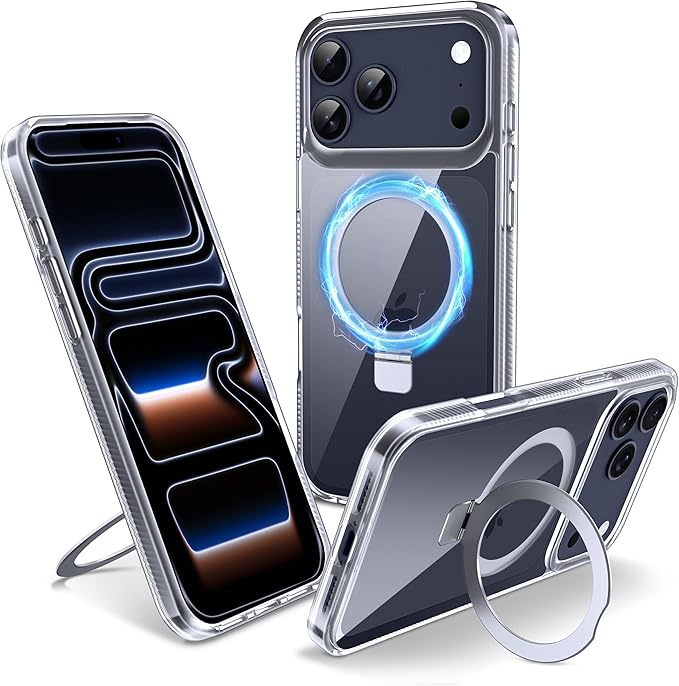 【隠しスタンド&リング・MagSafe対応】独自の隠しスタンドとリングデザインにより、iPhone 17 Pro Maxを横向きや縦向きで安定して立てることができ、映画視聴やビデオ通話に便利です。また、MagSafe対応で、ワイヤレス充電器やMagSafeアクセサリーとの互換性が高いのも大きな魅力です。