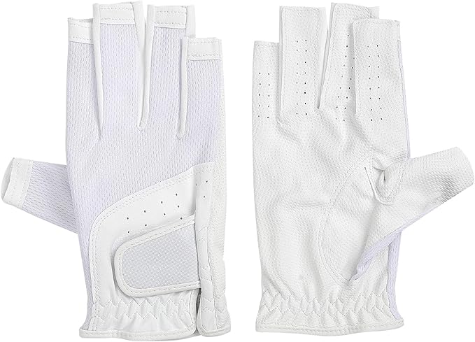 ゴルフグローブ レディース 両手 指先カット グローブ 手袋 通気性 メッシュ 高いグリップ力 UVカット 伸縮性 ソフト ストレッチ生地 耐摩耗性 調整可能 滑りにくい ゴルフ アウトドア シンプル 夏 おしゃれ ホワイト