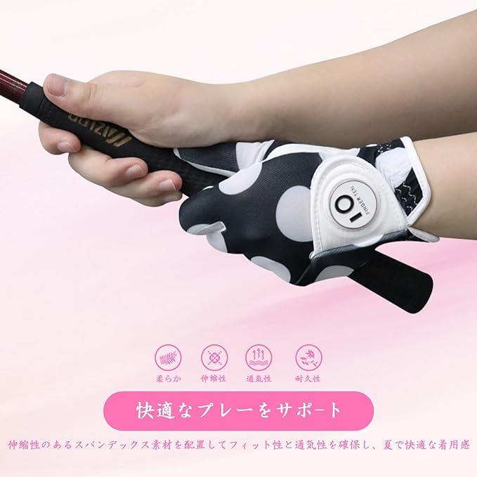 ゴルフグローブ レディース 両手 羊革とマイクロファイバーレザー ストレッチ生地 ソフト 柔らかめ 伸縮 通気 耐摩耗性 滑りにくいグリップ 雨 汗に強い 全天候モデル ゴルフマーカー付き NYS-018