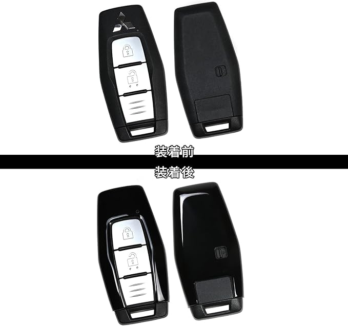 表、裏カバーの2点セットです。取付所要時間:5分 三菱エンブレムが隠れます。カバーを取り付けることによる機能への影響はなく、普段通りお使い頂けます。パネルの厚み分、ボタンが若干中に入る形になりますが誤操作防止として役立ちます。製品誤差により側面の合わせ面に若干の隙間が出る場合がございます。