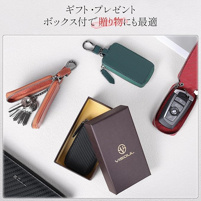 [VISOUL] スマートキーケース 本革 キーケース カバー型 キーホルダー キーケース メンズ スマートキー 車キーケース 本革 キーカバー キーホルダー 革 ワインレット D型上下開け