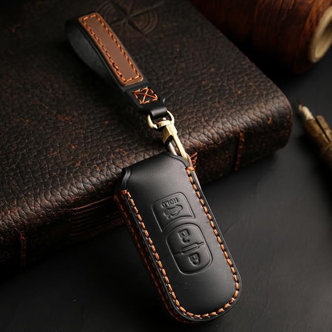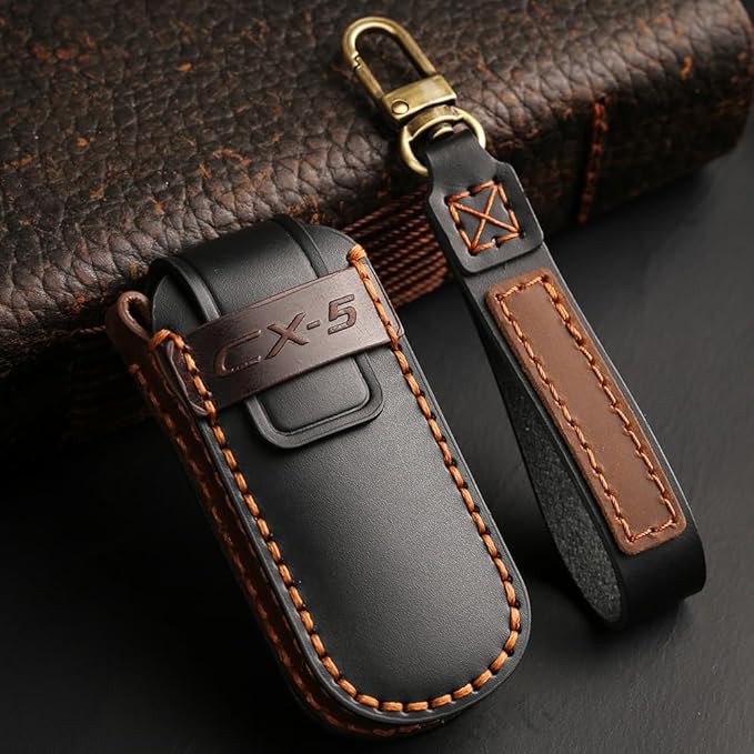 【LEXLEY 新型キーケース 登場】マツダ CX-5 KE系 KF系 専用 革 キーケース レザー キーカバー キーホルダー スマートキーケース CX-5ロゴ付 カスタムキーケース(ブラック)
