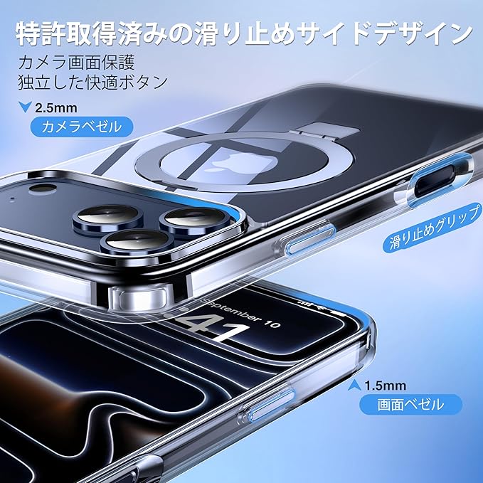 【薄い。 ライト。 滑り止め、断熱、ネバーイエロー】キックスタンド付き半透明磁気iPhone17 pro max ケースは人間工学に基づいたデザインを採用しています、滑り止め性能に優れています。正確なカットアウトとスリムなデザインにより、携帯電話の機能を最大限に活用できます。ブラケットの溝の独自の深さにより、携帯電話のパーマを気にせずに、自由にポケットに入れることができます。 また、すべての素材とコーティングは、時間の経過による黄ばみを防ぐために最適化されています。