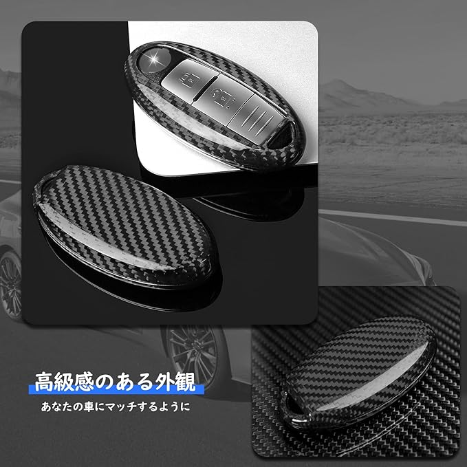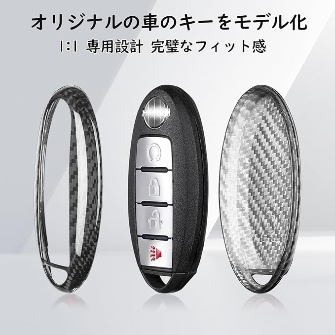 [T-carbon]日産 車用 セレナ キーケース キーカバー セレナ マーチ ノート キューブ エルグランド スカイライン ディアナ エクストレイルに適用 キー ケース リアルガラス繊維 高級 キー カバー シルバーブラック | funshop