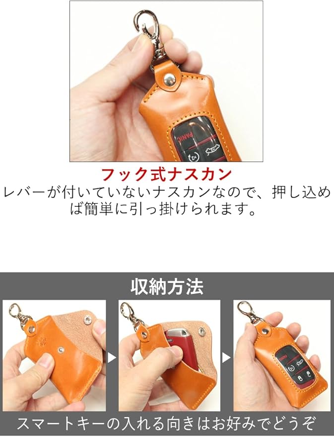 スマートキーケース ナスカンタイプ【Ricky's】 単体 ほぼ 全機種対応 クリア窓 窓付き キーケース キーレス ケース キーカバー 玄関扉 鍵 家 ドアキー YKKAP LIXIL 三協アルミ 本革 栃木レザー 日本製 リッキーズ