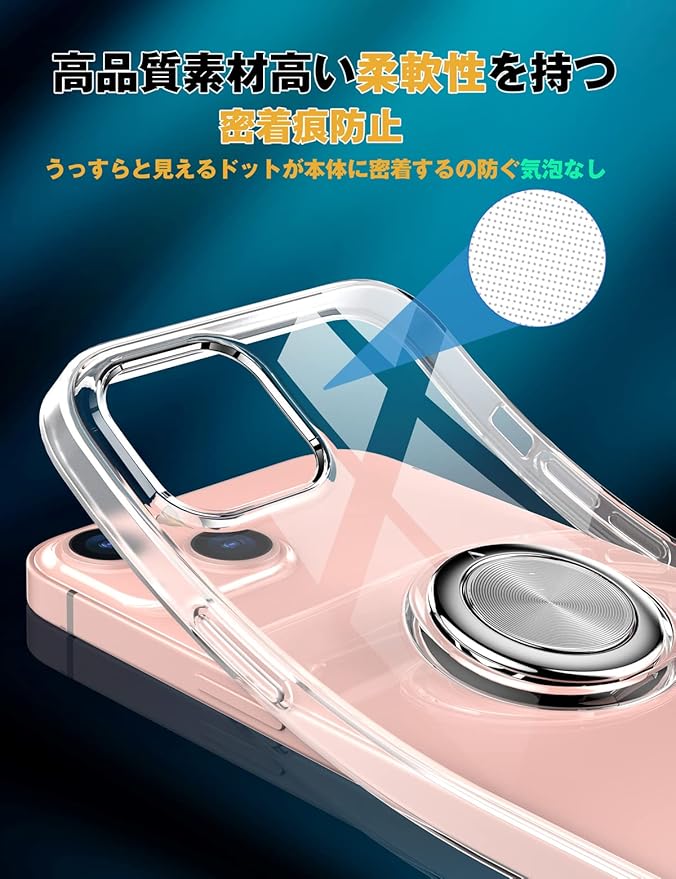 【リング付き機能】ケースを横置きにするとスタンド機能になり、持たず動画鑑賞などを楽しむことができます。リングは360度回転可能、180角度調節可能。一指着る式で、指がリングに通り抜け、片手で携帯を操作でき、落下防止します。