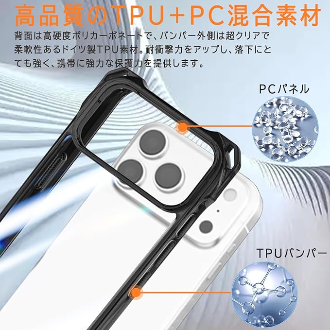 【高品質素材】iPhone 17 Pro Maxにより精密に設計されているため、しなやかで高品質なソフトTPU素材のフレームとPC素材のクリア背面の一体型で二種類の素材を組み合わせた一体成型ハイブリッドケースです。透き通った透明感を持ち、選びぬいた本体カラーと本体のロゴが完璧に表示されます。