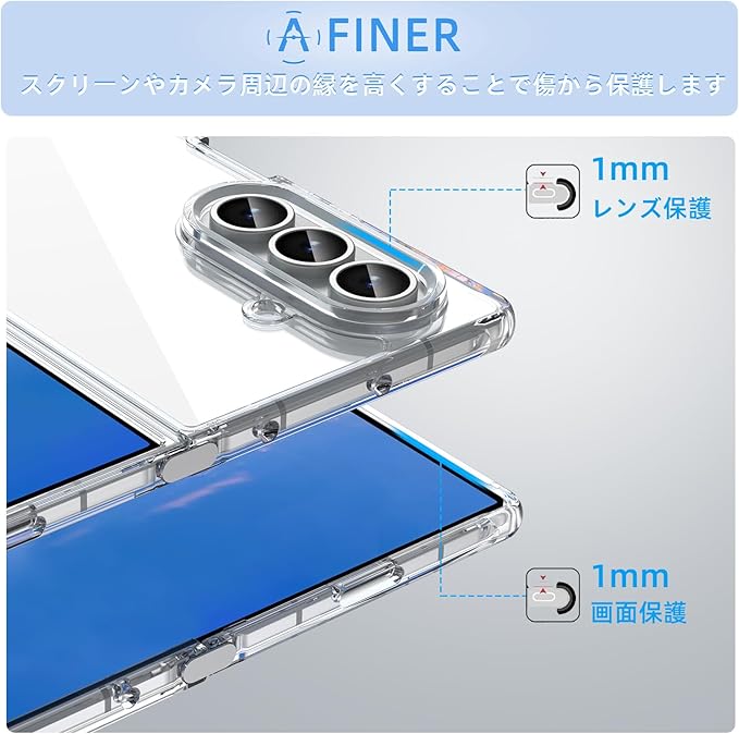 Samsung Galaxy Z Fold7 ケース『AFINER』新型 軽量 超薄型 TPU+PC 透明 カバー 耐衝撃 衝撃吸収 指紋防止 擦り傷防止 レンズ保護 着脱簡単(透明)