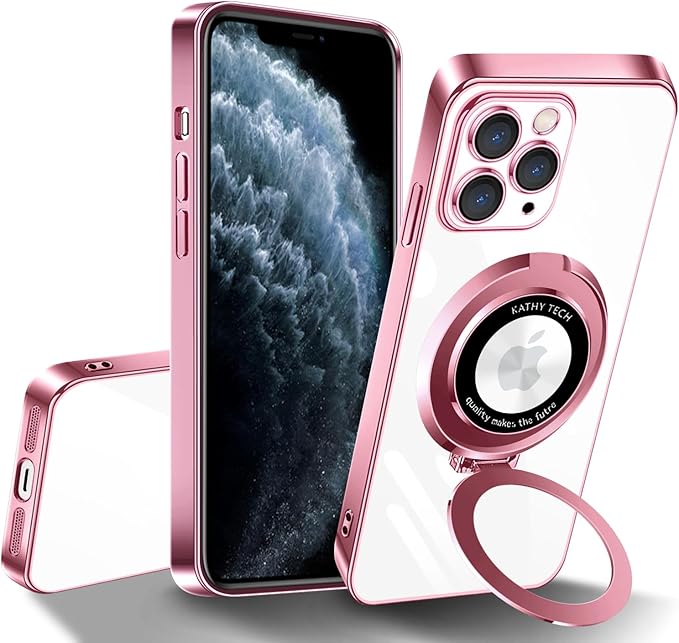 iPhone 11 Pro Max 用 ケース クリア MagSafe対応 アイフォン11ProMax カバー 縦横両対応 多機能一体スタンド 透明 TPU 耐衝撃 薄型 軽量 レンズ保護 Qi ワイヤレス充電対応 iphone11pro max スマホケース(ローズゴールド)