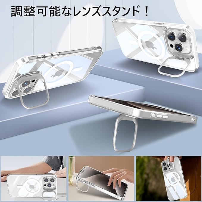 iphone 15 pro max 用 ケース レンズスタンド付き 角度調整可能 アイフォン 15 pro max カバー Magsafe対応 いphone 15 promax カバー 米軍MIL規格 耐衝撃 スマホケースiphone15 プロマックス カメラスタンド 軽量 スマホカバーiphone15プロマックス マット仕上げ 半透明 マット 黄変防止 6.1インチ クリア【SHANGHAO】