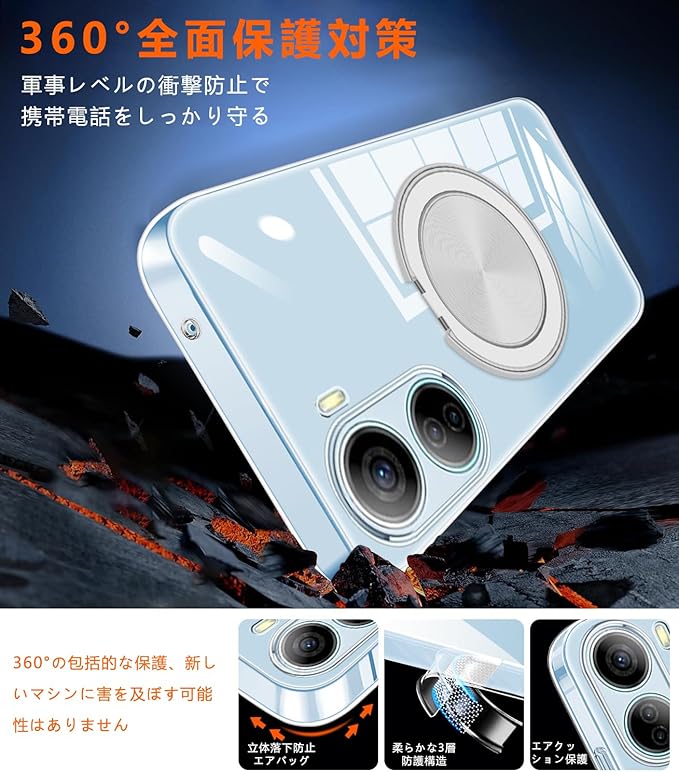 Xiaomi 17 Pro Max ケース クリア シリコン MagSafe対応 リング付き 360 回転スタンド 縦横両対応 アジャスタブルスタンド マット仕上げ 耐衝撃 スマホ ケース グーグル ピクセルカバー 衝撃吸収ポケット内蔵 TPU 薄型軽量 ストラップホール付き Xiaomi 17promax 保護カバー