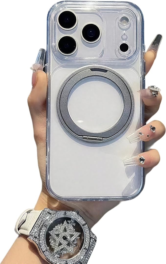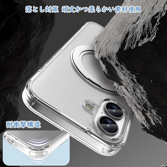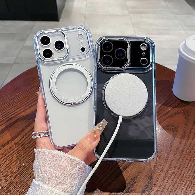 Kevis スマホケース iPhone17シリーズ専用【MagSafe対応】軍用規格耐衝撃保護 カメラ専用ボタン適用 360度スタンド機能 充電可能 (透明, iPhone 17promax)