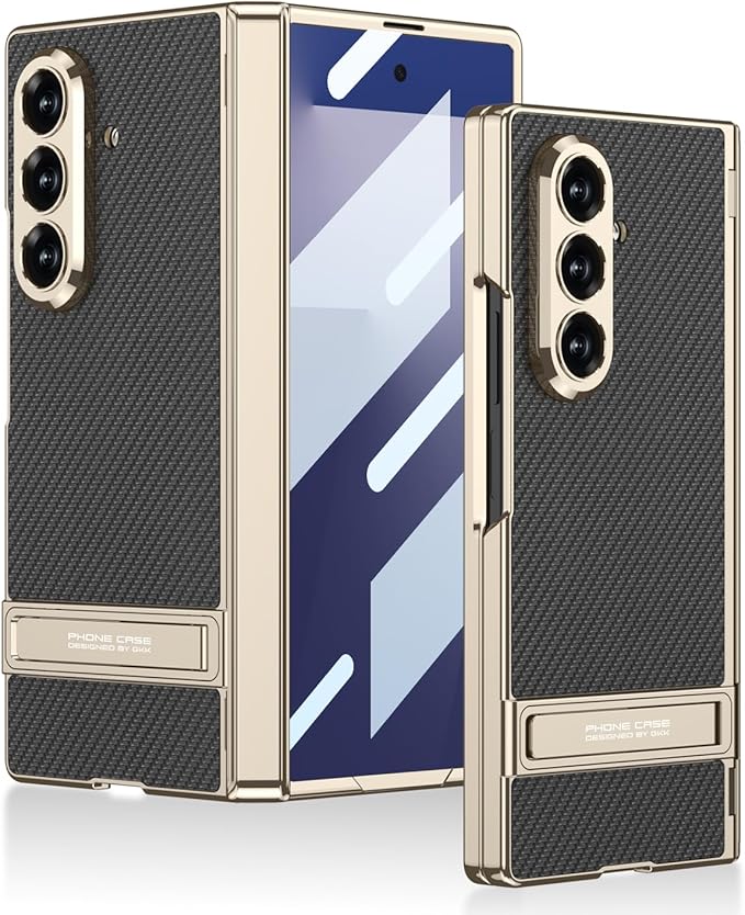 Galaxy Z Fold7 用 ケース ヒンジ保護 スタンド付き 一体型フィルム付き 上質レザー メッキバンパー Gunwon ギャラクシー Z fold7 SC-56F/SCG34 スマホケース ワイヤレス充電可能 フォールド7 携帯カバー レンズ保護 キラキラ 革 手触り良い 耐衝撃 「カーボン」