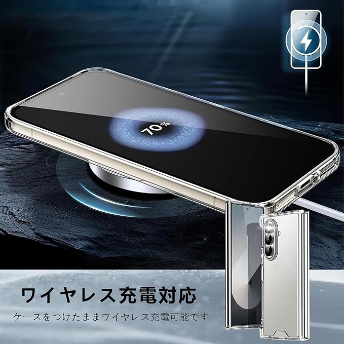 軽量・薄型デザインで、スマートフォン本体のデザインを損なうことなく、しっかりとスマートフォンを守ります。また、ワイヤレス充電