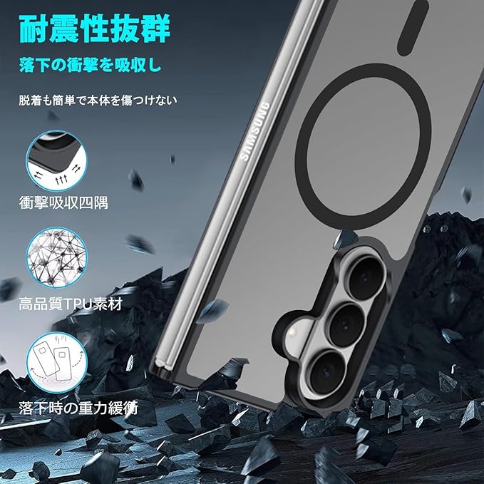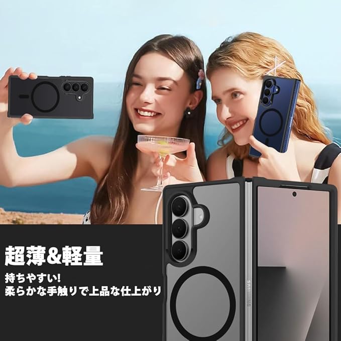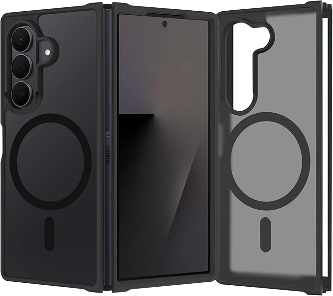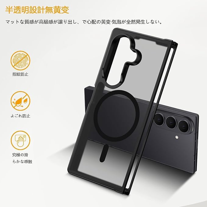 For Galaxy Z Fold 7 用 ケース MagSafe対応 マグセーフ ワイヤレス充電 半透明 マグネット搭載 TPU PC 落下防止 衝撃吸収 滑り止め 防塵 耐久性 黄ばみなし 耐衝撃 全面保護 レンズ保護 Samsung ギャラクシーZフォールド7 5G SC-56F / SCG34 用 カバー マット ブラック