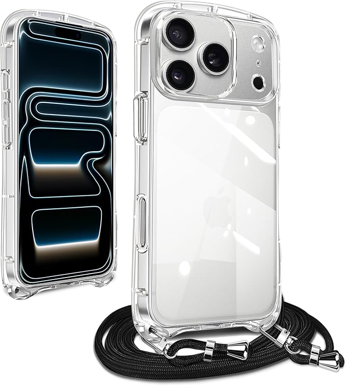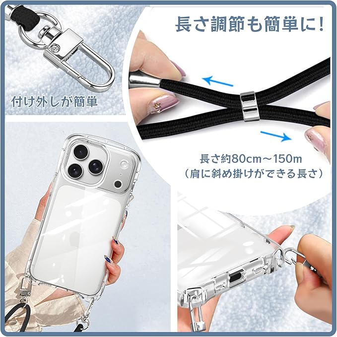 iPhone 17 Pro Max 用の ケース ショルダー ストラップ iPhone 17ProMax 用の カバー クリア 斜めかけ 肩掛け 首掛け 韓国 アイフォン17 プロ マックス 用の スマホケース 全透明