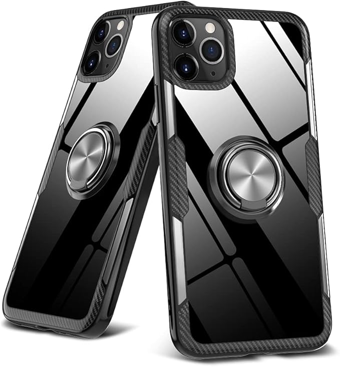 iPhone 11 Pro Max ケース クリア リング付き 耐衝撃 薄型 全面保護 背面強化ガラスケースクリア TPU バンパー スタンド機能 透明 落下防止 耐衝撃 擦り傷防止 指紋防止360度回転 マグネット 車載スタンド対応 アイフォン11 pro maxケースカバー 薄型 軽量人気 一体型 全面保護カバー 黒 B45
