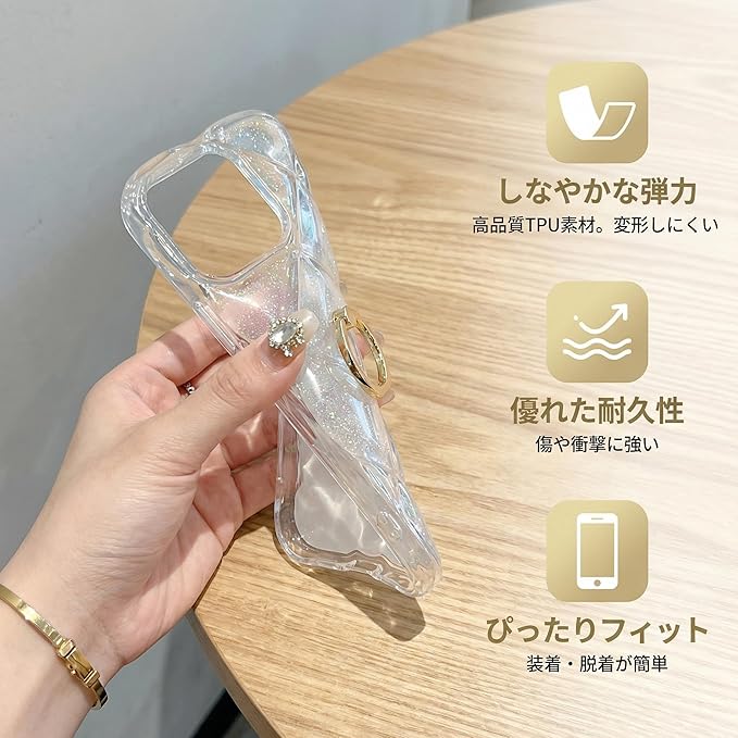 【ウェーブ縁&菱形バック】このクリアケースは透明TPUとウェーブエッジ、背面ダイヤモンドひし形ふわふわとアルミ箔シルバーキラキラ装飾で作られており、光の下でダイヤモンドのように輝き、高級感を醸し出します。うねうねエッジにより握りやすくなっていますが、背面にダイヤ柄ひし形凸凹バックとアルミ箔シルバー装飾で、 透明キラキラケースは柔らかいTPU製で、耐傷性、耐指紋性、耐衝撃性に優れ、取り外しも簡単,お手入れし易い。注意事項:Phone 17クリアケースの背面は凹凸のあるひし形のため、ワイヤレス充電には適していません。気になる方はご購入の際にご注意ください。