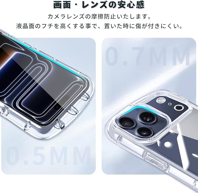 【全面保护】レーム部分とカメラのフチを高く設計し。平らな場所においても、液晶画面とカメラレンズに直接触れることがなく。