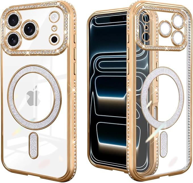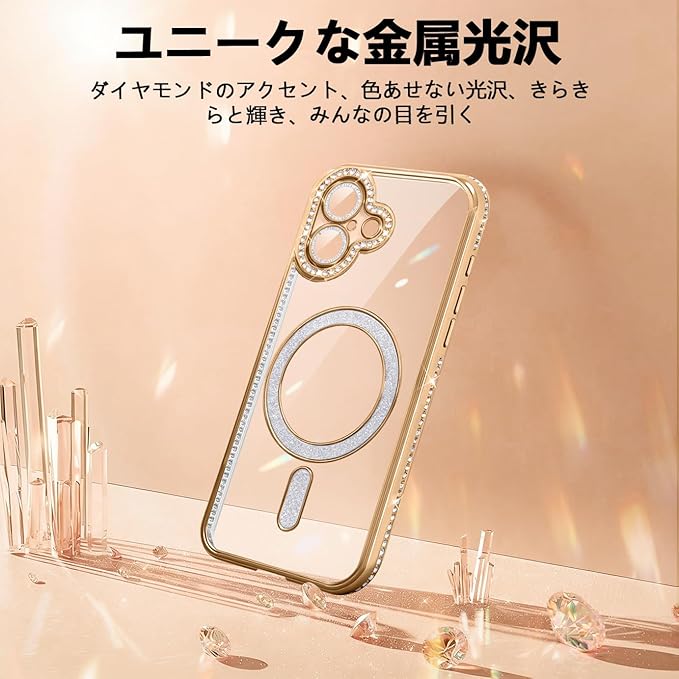 互換 iPhone 17 pro max ケース クリア 薄型 いphone17promax カバー サイドドリル 磁気吸引式携帯ケース TPU 軽量 ファッション アイフォン17プロマックス スマホケース ワイヤレス充電 フラッシュドリル磁気吸殻 耐衝撃 シリコン 転倒防止 耐久性 黄変防止 ひっかき防止 ポータブル レンズ保護スマホ めっき技術(ゴールド)