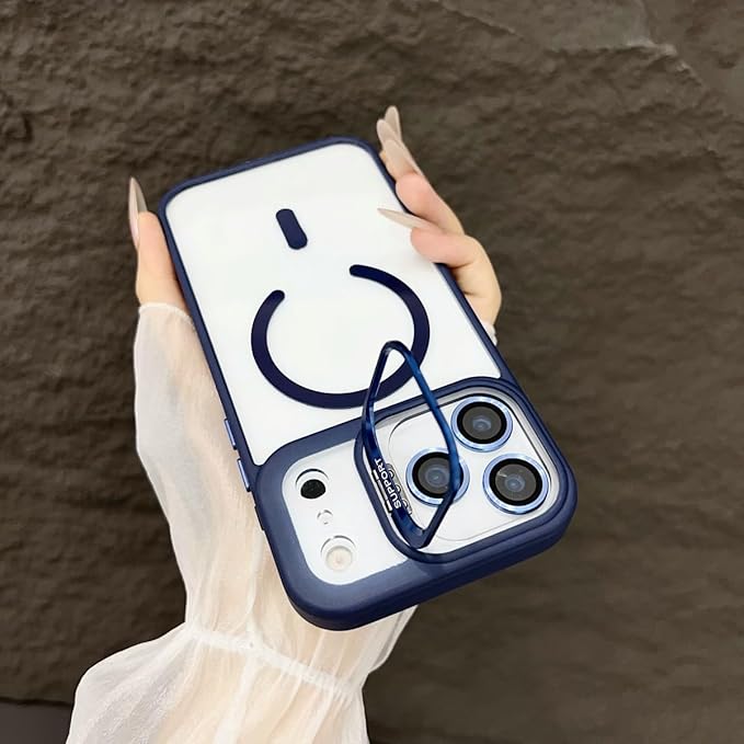 MagSafe対応 隠しスタンド付き iPhone 17 Pro Max 用ケース,対応 アイホン17Pro Max ケース カメラレンズ保護 い クリア アイフォン 全面保護 充電対応 保護 レンズフィルム付き (ダークブルー, iPhone 17 Pro Max)