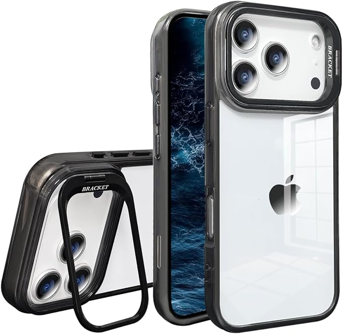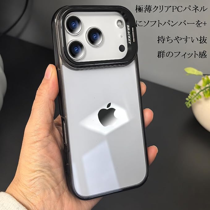 スマホケース 対応 iPhone 17 Pro Max ケース クリア 透明 カメラ隠れスタンド 米軍MIL規格の保護 ストラップ穴 耐黄変 耐衝撃 傷防止背面 軽量 薄型 ブランド アイフォン17プロマックス 携帯かばー (ブラック, iPhone17 Pro Max)