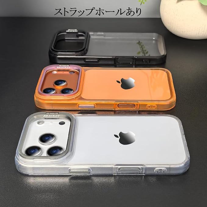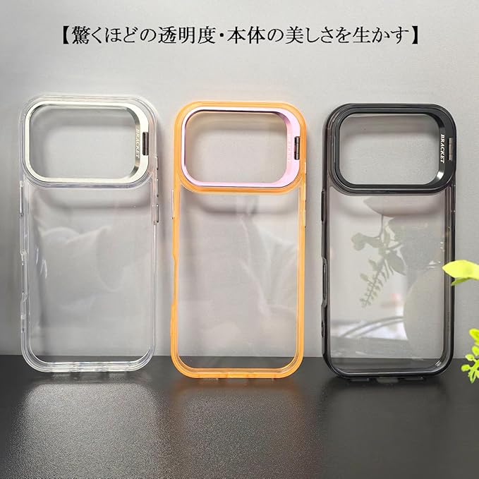 YUYIB スマホケース 対応 ケース クリア 透明 カメラ隠れスタンド 米軍MIL規格の保護 ストラップ穴 耐黄変 耐衝撃 傷防止背面 軽量 薄型 ブランド 携帯かばー