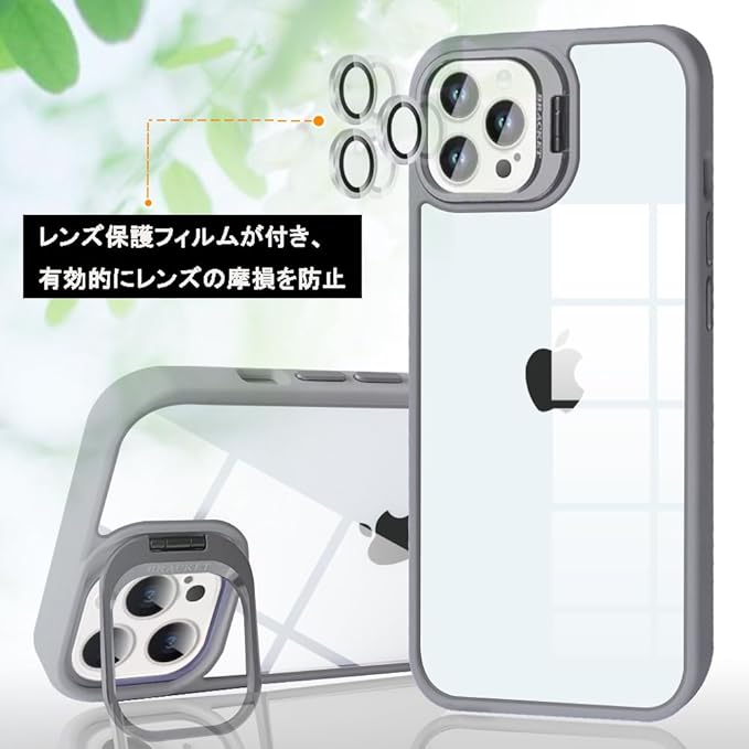 iPhone 12 Pro Max 対応 ケース レンズスタンド付き クリア PC背面+TPUバンパー レンズカバー付き 耐衝撃 ストラップホール付き アイフォン12プロ マックス 用 ケース スマホケース