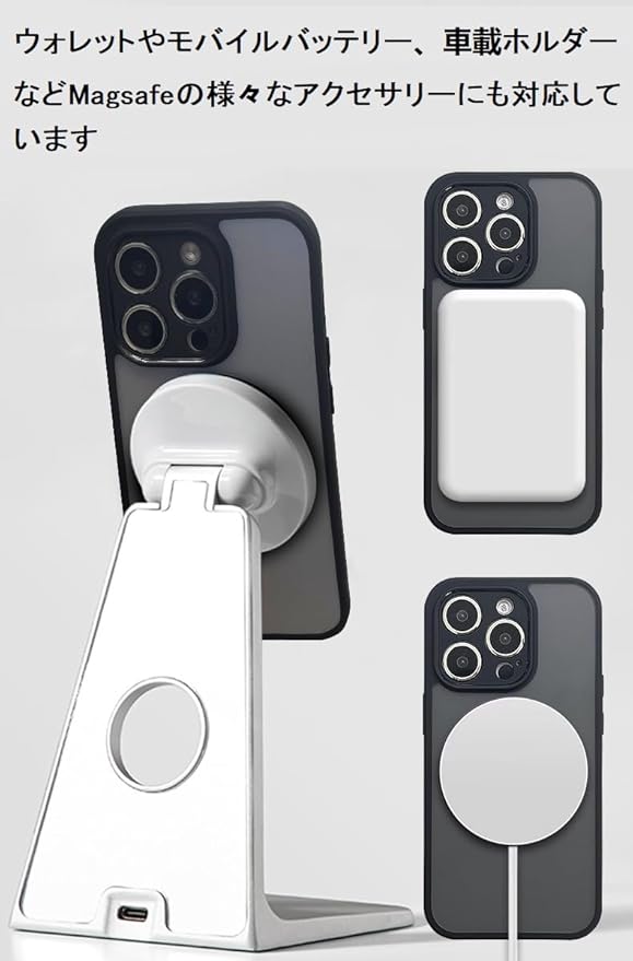 ★【Magsafe対応】高い吸着力でガッチリと固定しながら充電ができます。安定性を持ち、充電器を近づけると高速ワイヤレス充電が実現です。また、磁気を利用しているため充電器以外にもスタンドやウォレットなどのアクセサリーに固定可能。