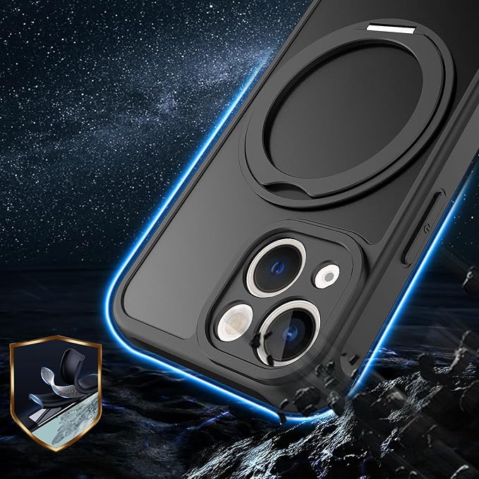 FOR Galaxy Z Fold7 用 ケース 【ブラケットギアの回転】【Magsafeリング・スタンド一体】360 回転スタンド マグネット搭載 縦横両対応 角度調整可 ストレスを和らげる リング ギャラクシーZ フォールド7 隠しスタンドケース ワイヤレス充電 車載ホルダー 対応 半透明 指紋防止 黄变防止(ブラック)