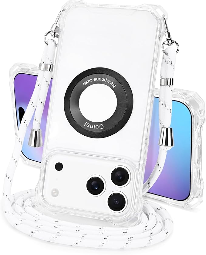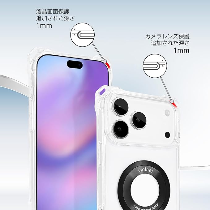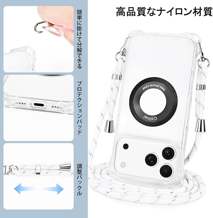 iPhone17 pro max ケース 肩掛け 首掛け Magsafe対応 衝撃吸収 アイフォン17プロマックス ケース ショルダー ストラップ付き iphone17 pro maxカバー 磁気 傷つけ防止 全面保護 おしゃれ 軽量 取り外し可能 長さ調節可能 TPUバンパー(クリア)