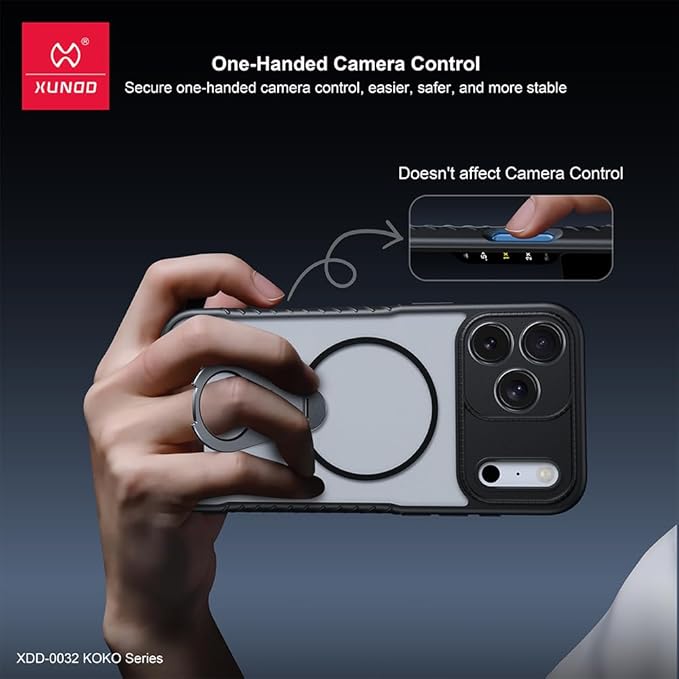iPhone 17 Pro Max 用 リングケース 360度回転 MagSafe対応 半透明 半クリア マット仕上げ アイフォン17promax カバー ケース リング付き 縦置きスタンド カラフル ,白