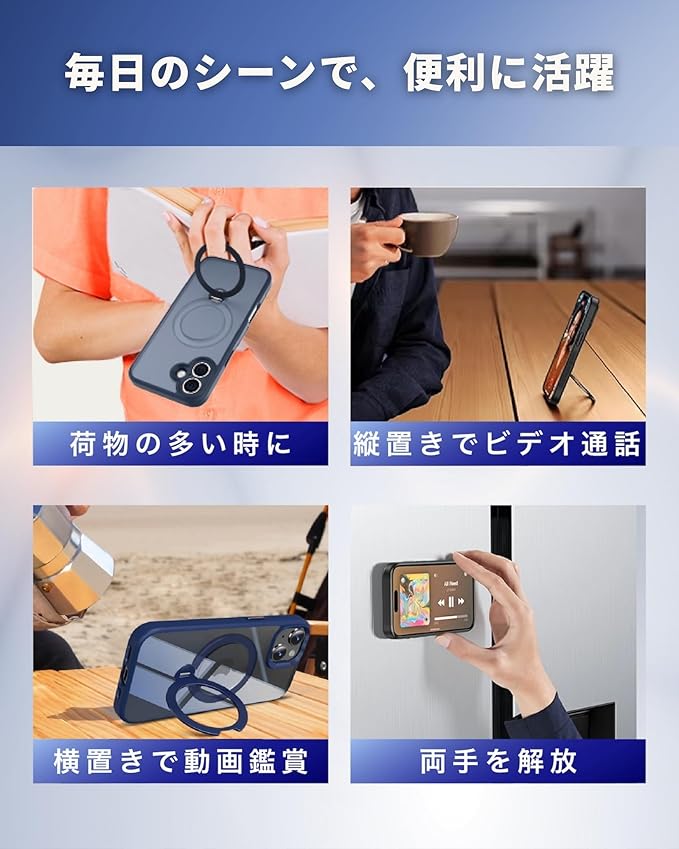 ✅【 360 回転リングスタンドケース ・縦横自在の配置が可能 】 通常の固定式のスタンドケースとは異なり、iPhone 対応のこのスタンドケースは360度の回転に対応しています。Web会議や友達とのビデオ通話時には縦置き、映画や動画の視聴時には横置きにと、シーンに合わせて立てることが可能です。