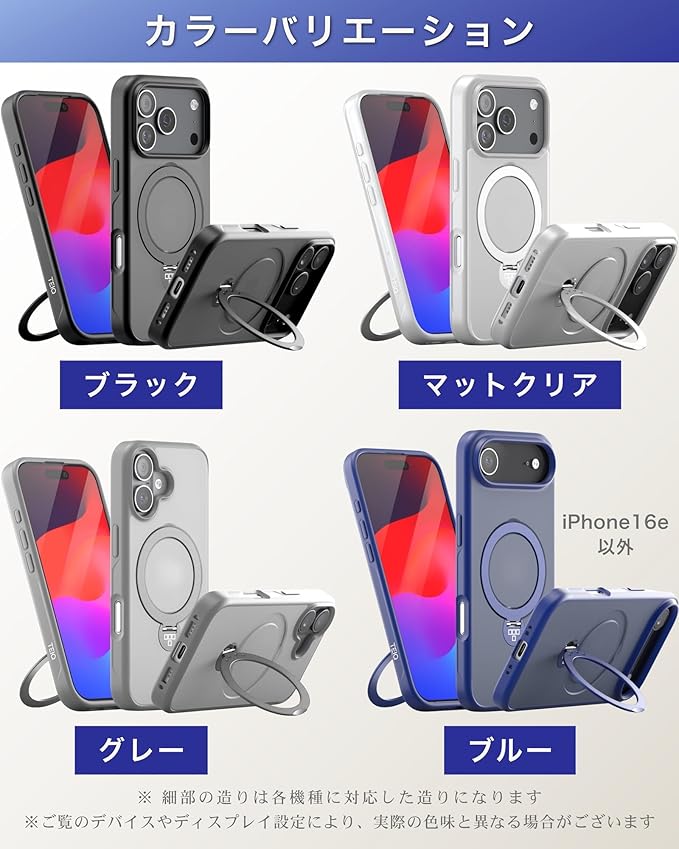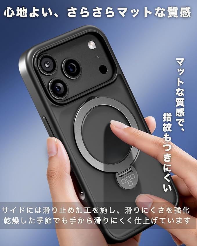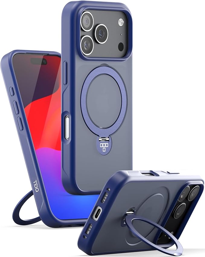 iPhone 17 Pro Max ケース リング付き スタンド TEIQ 【 リング一体型 / 360 回転/縦横両対応 】 MagSafe対応/マグネット内蔵/指紋防止/マット質感/耐衝撃 カバー iPhone 17 Pro Max 用 (ブルー)