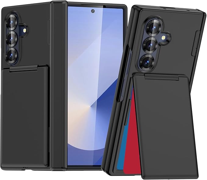KOOLRIVER・For Galaxy Z Fold7 クリア ケース カバー 折りたたみ型 透明 カード収納 側面 シリコン+ 背面プラスチック シンプル お洒落 ギャラクシー フォールド7 保護ケース(ブラック)