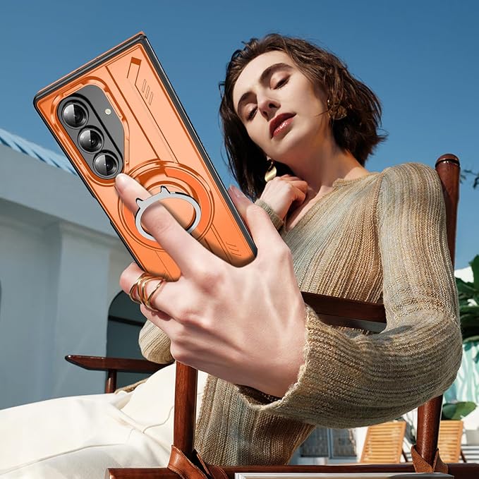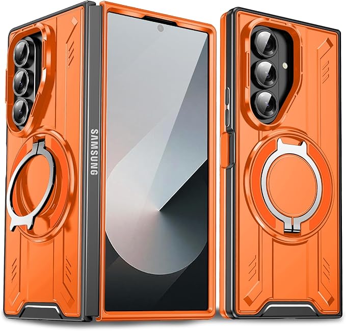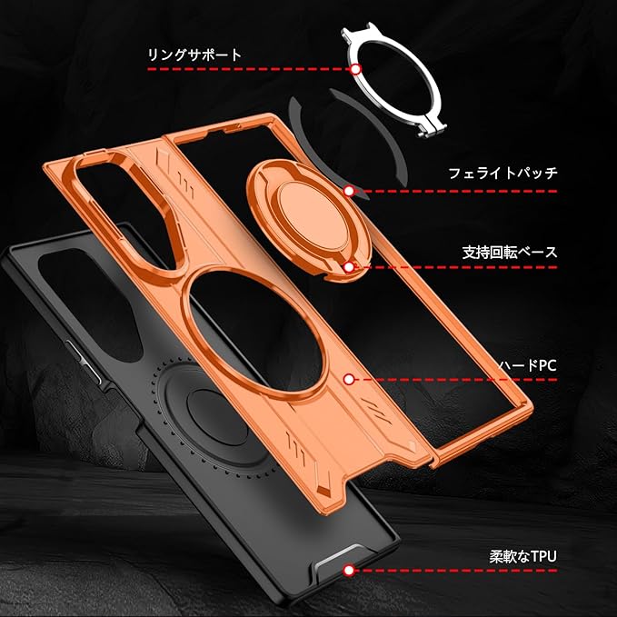 対応 Galaxy Z Fold7 用 ケース Magnetic対応 リング スタンド機能 耐衝撃 TPU+PC 軽量 滑り止め 落下保護 車載ホルダー対応 ギャラクシー Z フォールド7 5G 携帯カバー オレンジ R-LS-Fold7-06